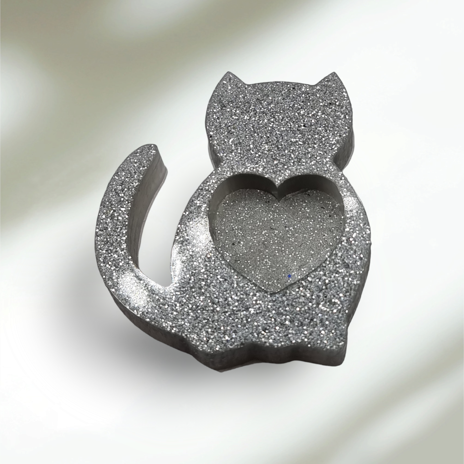 Katje met hartje, grijs met zilveren glitters, nog keuze voor invulling van het hartje