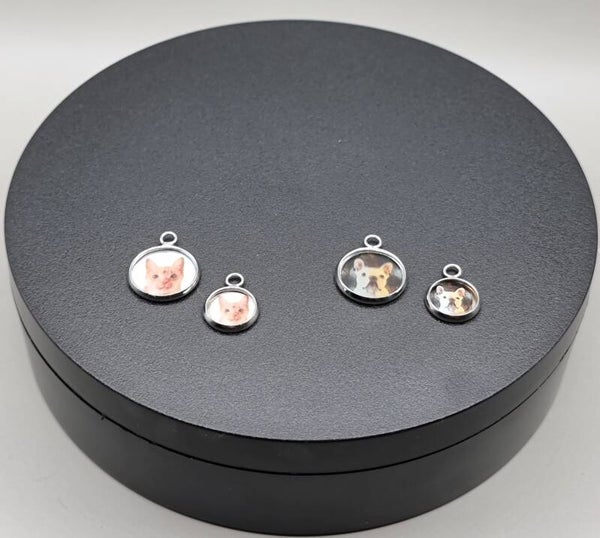 Ketting + hangertje met eigen foto. U bepaalt zelf wat voor soort foto u in het hangertje wilt. Op de voorbeelden zijn honden, katten, mensen en bloemen te zien, maar u kunt zelf een foto uploaden.