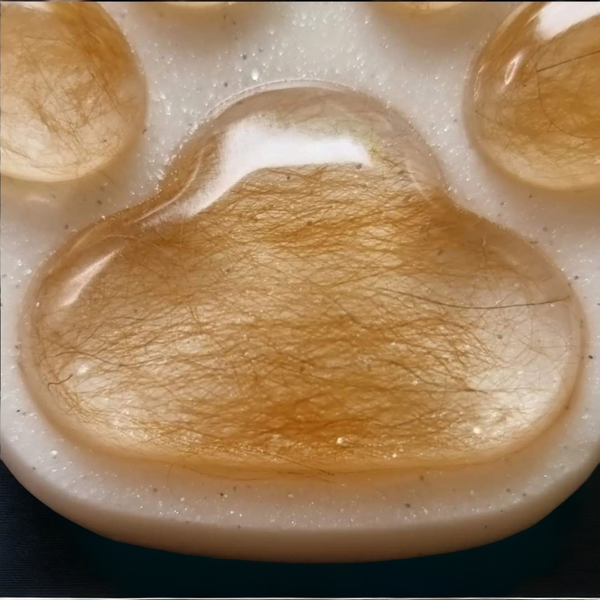 Dit kunnen haartjes zijn zoals te zien op de foto's, maar u kunt er ook voor kiezen om er as van uw huisdier in te laten verwerken (of een combinatie van haartjes en as).